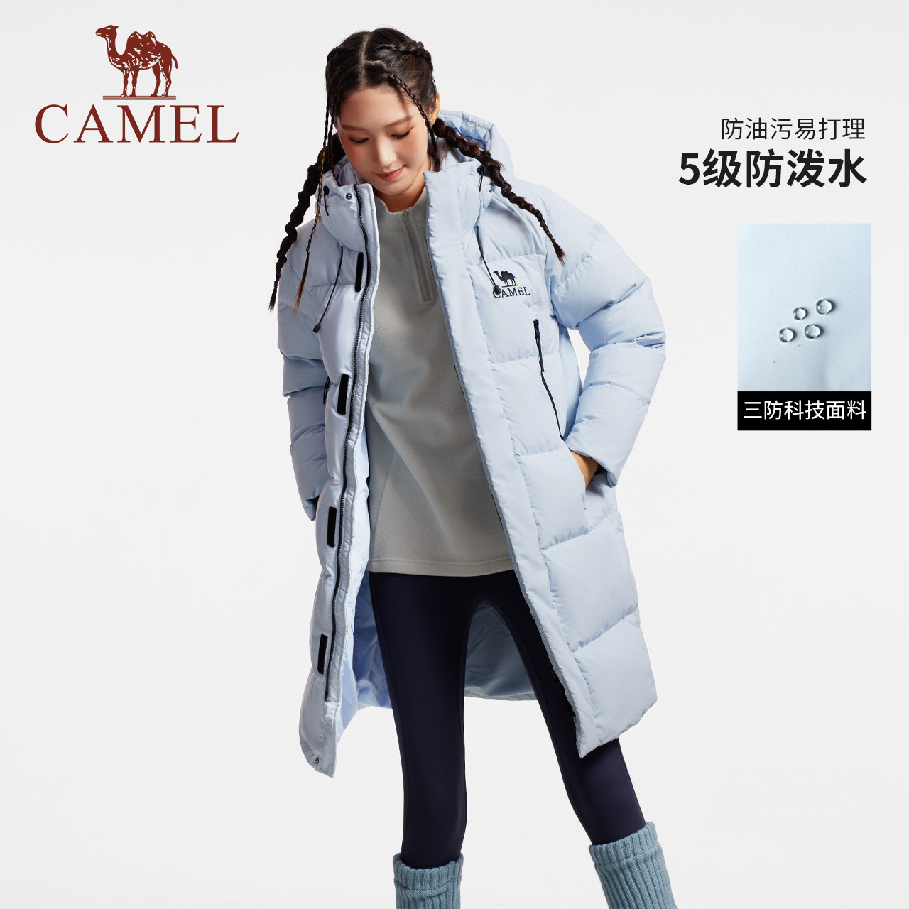 骆驼女装中长款羽绒服2025冬季新款三防加厚保暖连帽羽绒外套