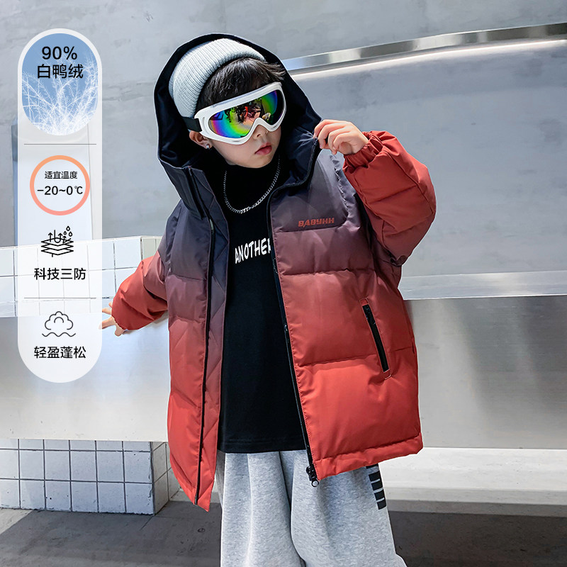 男童冬季渐变短款连帽滑雪羽绒服