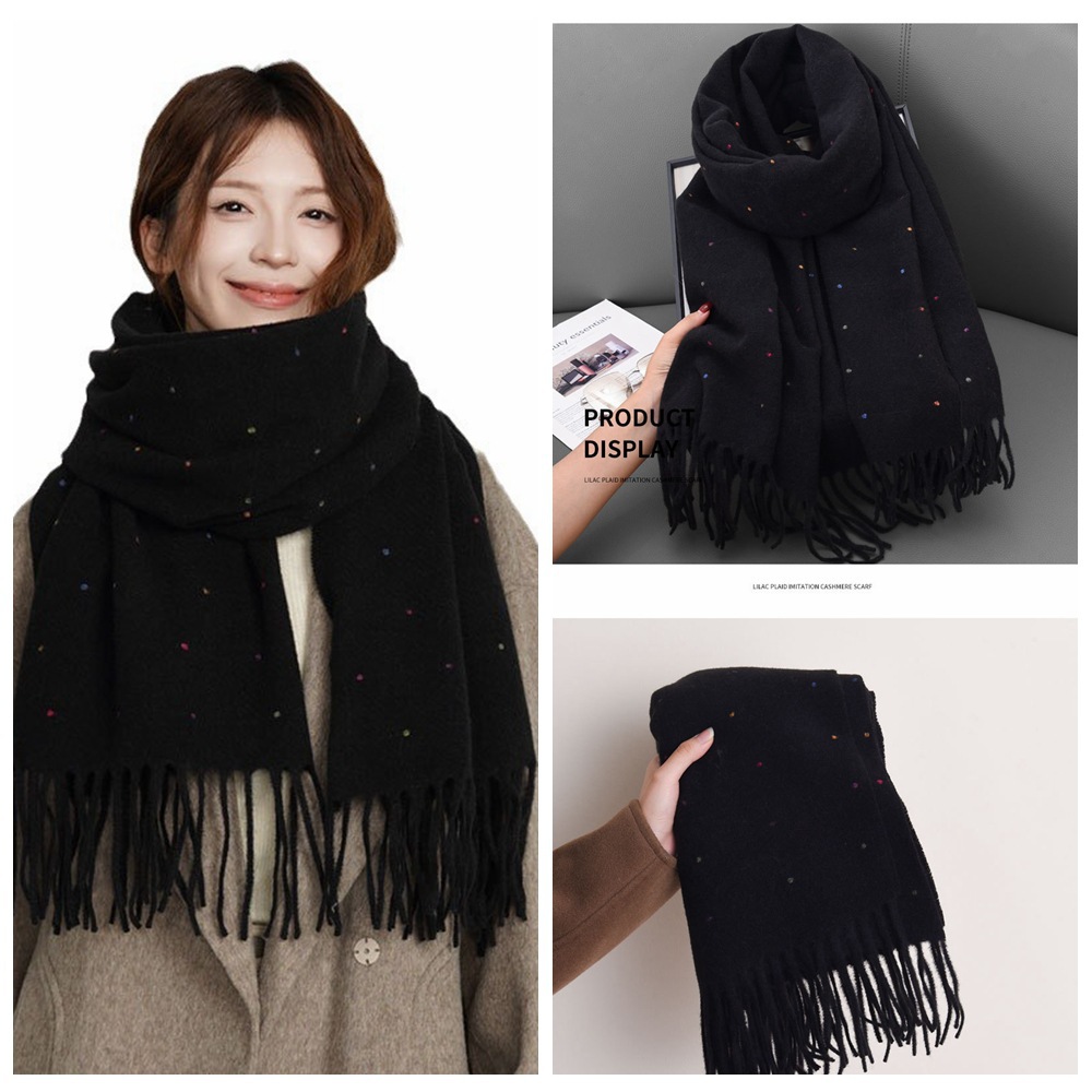 韩版围巾点点加厚仿羊绒女士披肩纯色保暖秋冬季学生百搭围脖情侣