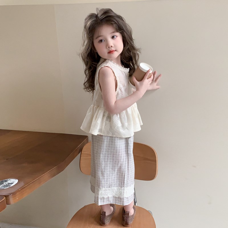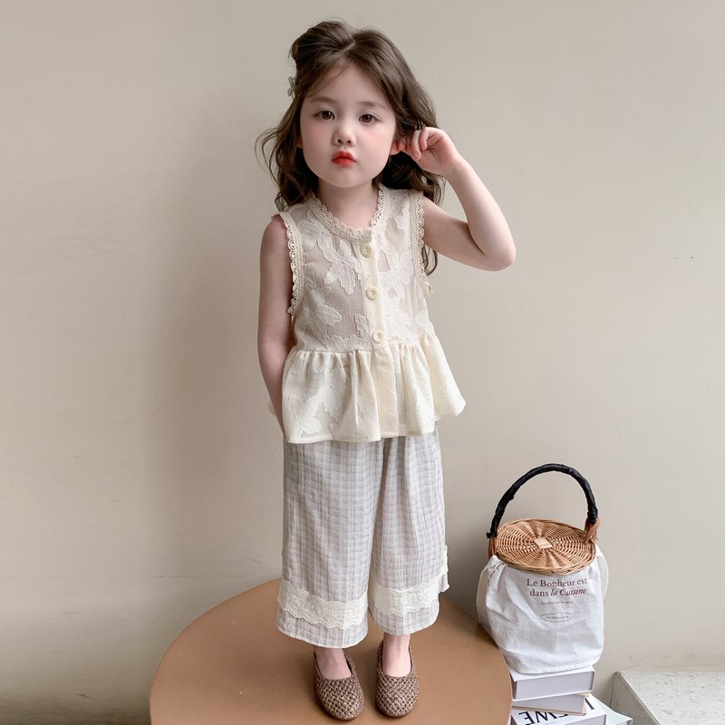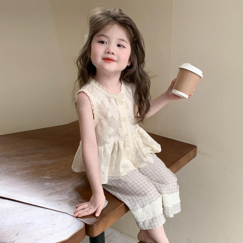 女童套装夏季2025新款小女孩洋气背心阔腿裤两件套女宝宝时髦夏装