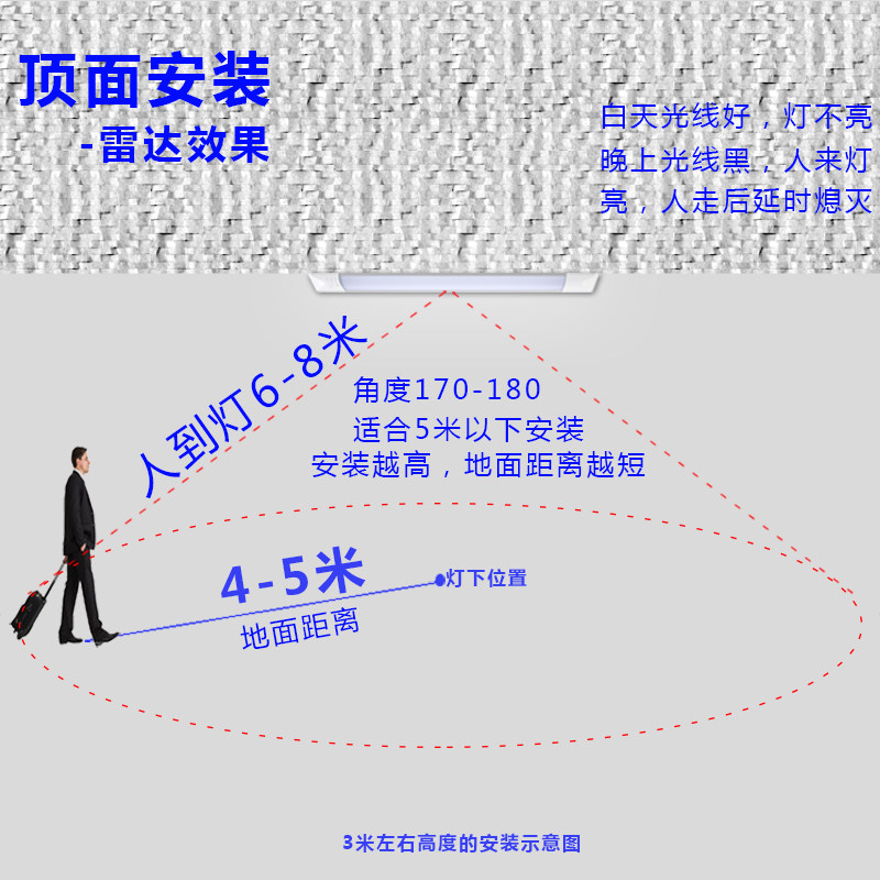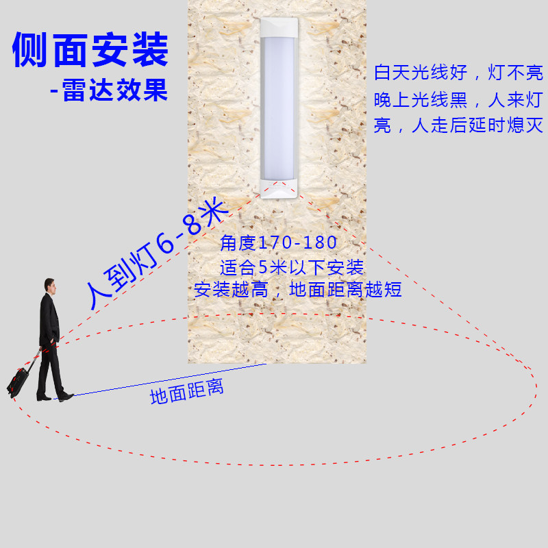长方形雷达人体感应灯车库小区走廊走道壁装顶装LED声控楼梯灯管