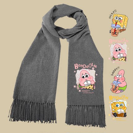 海绵宝宝派大星周边联名男女卡通情侣休闲百搭可定制围脖披肩围巾