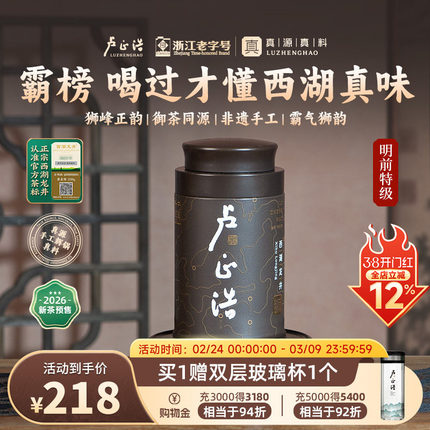 2026年新茶预售卢正浩明前特级狮峰山脉西湖龙井狮字茶叶罐装50g