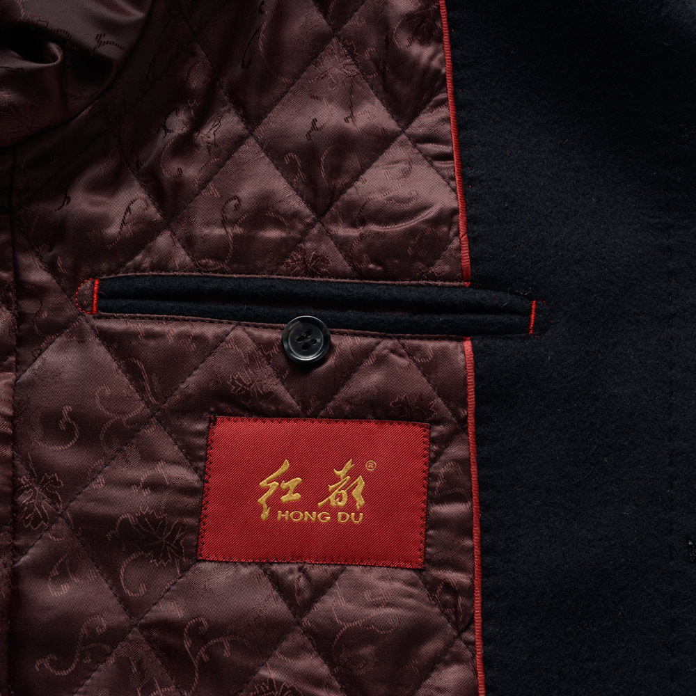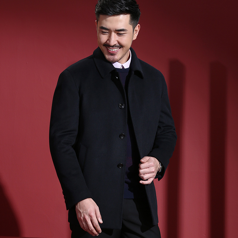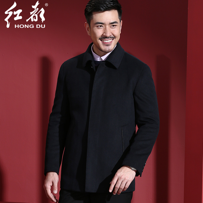 红都新款男士中老年羊毛大衣加棉加厚中年羊毛呢大衣男装羊毛大衣