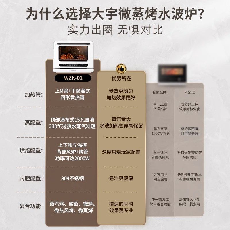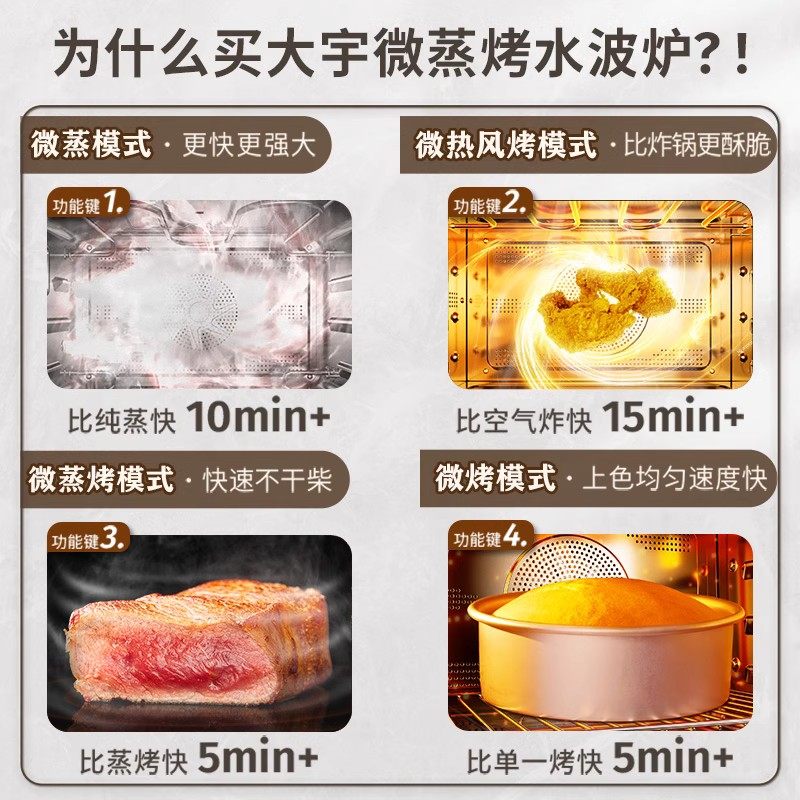 大宇WZK01微蒸烤炸一体机大容量家用台式蒸烤箱水波炉变频微波炉