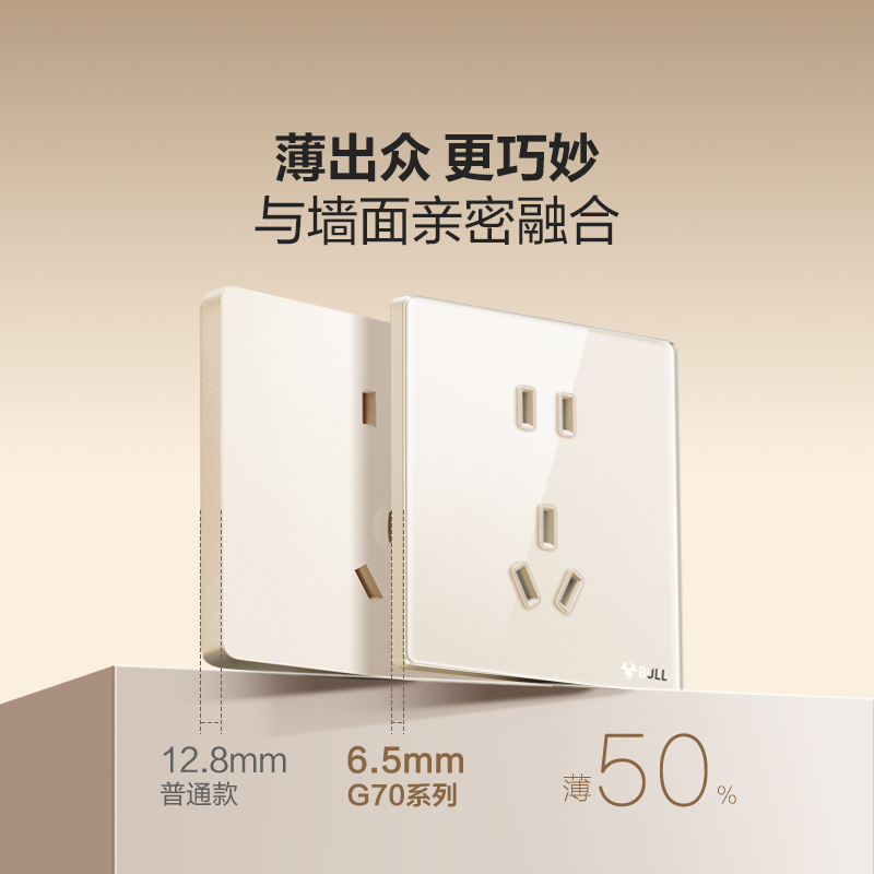 公牛G70超薄拨杆开关亚克力五孔插座16a面板奶油风86型复古开关金