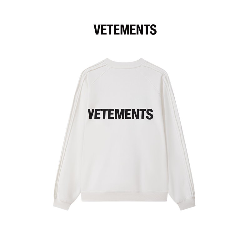 VETEMENTS新款男女黑白色100%纯棉刺绣印花圆领套头卫衣64520014