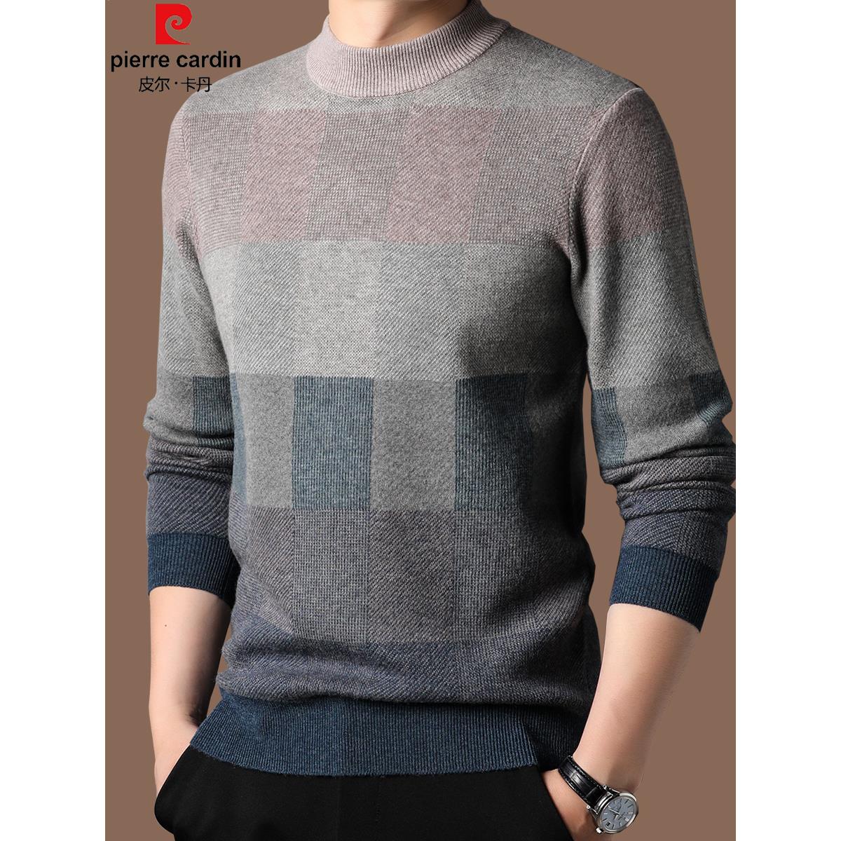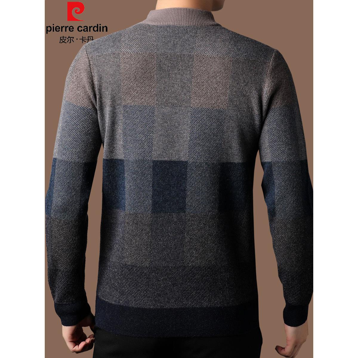 皮尔卡丹高档男士100%纯羊毛衫半高领毛衣冬季加厚保暖羊绒打底衫