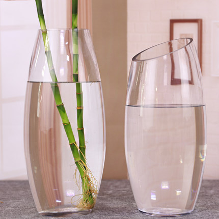 透明玻璃花瓶现代创意造型斜口干花插花花器客厅富贵竹装饰摆件