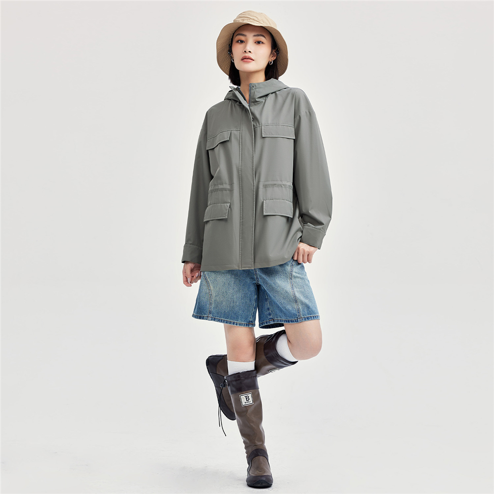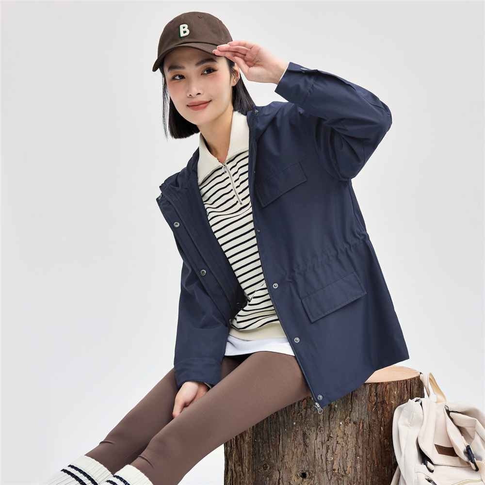 佐丹奴外套女装戴盖口袋抽绳中长款梭织连帽风衣 05374669
