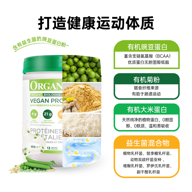 Organika奥加尼卡有机植物豌豆蛋白质粉膳食纤维素食代餐粉女468g