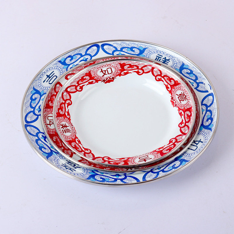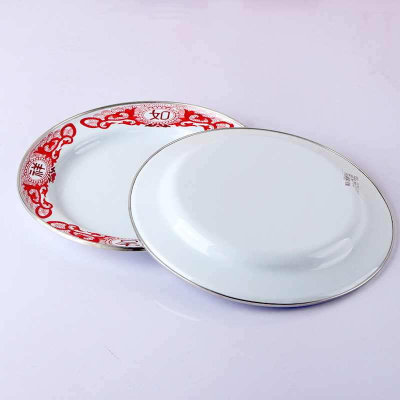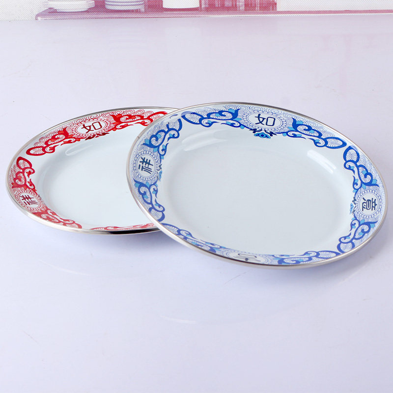 特厚搪瓷盘子 碟子 高点盘 水果盘家用餐具 搪瓷碟子平盘双料搪瓷