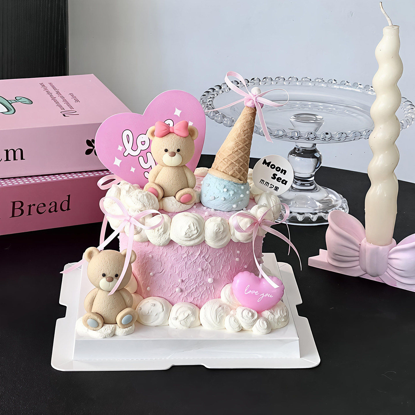 包邮网红2.14情人节蛋糕装饰摆件蝴蝶结小熊雨伞蜡烛爱心love插件