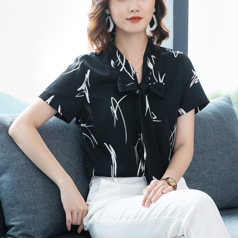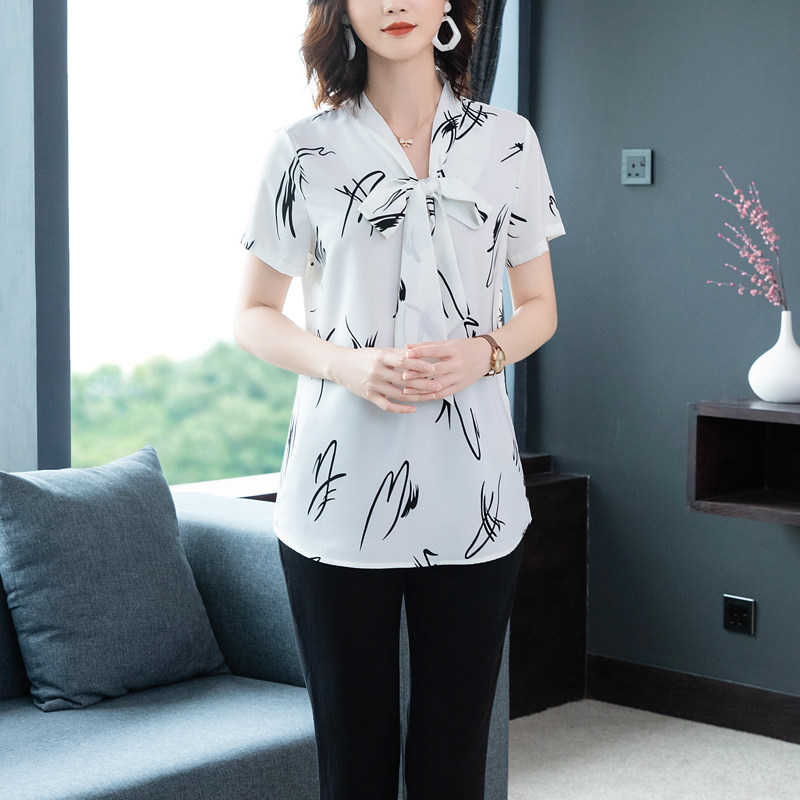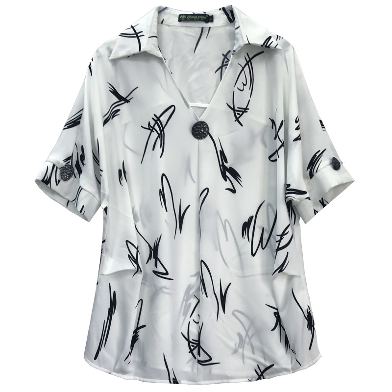 加肥加大码雪纺衫短袖遮肚子衬衣