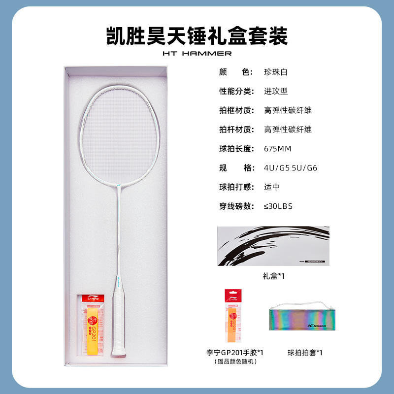 凯胜昊天锤礼盒套装李宁羽毛球拍高弹性碳纤维专业进攻型单拍