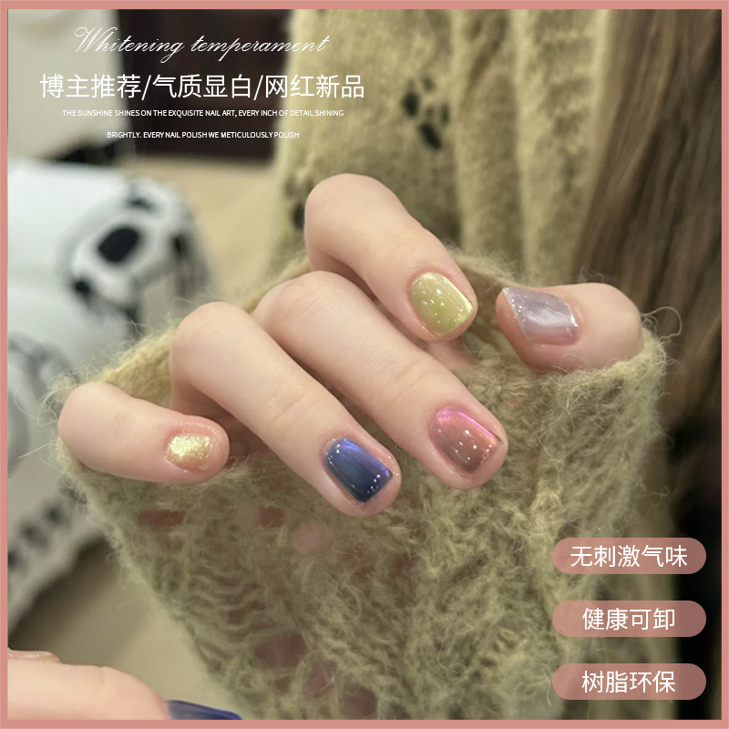 网红多巴胺猫眼指甲油胶2025年新款流行爆闪秦系列玻璃珠猫眼美甲