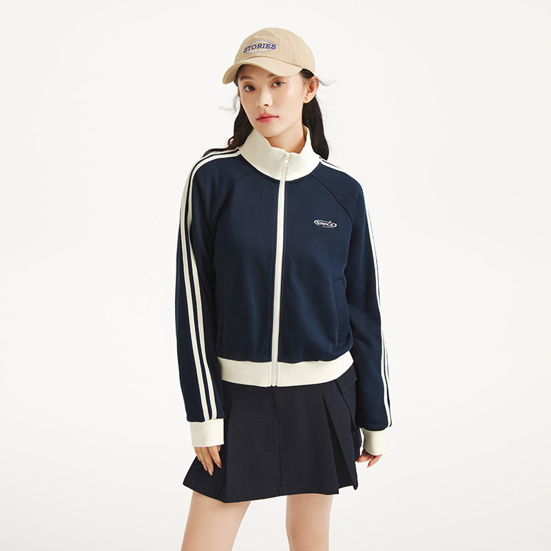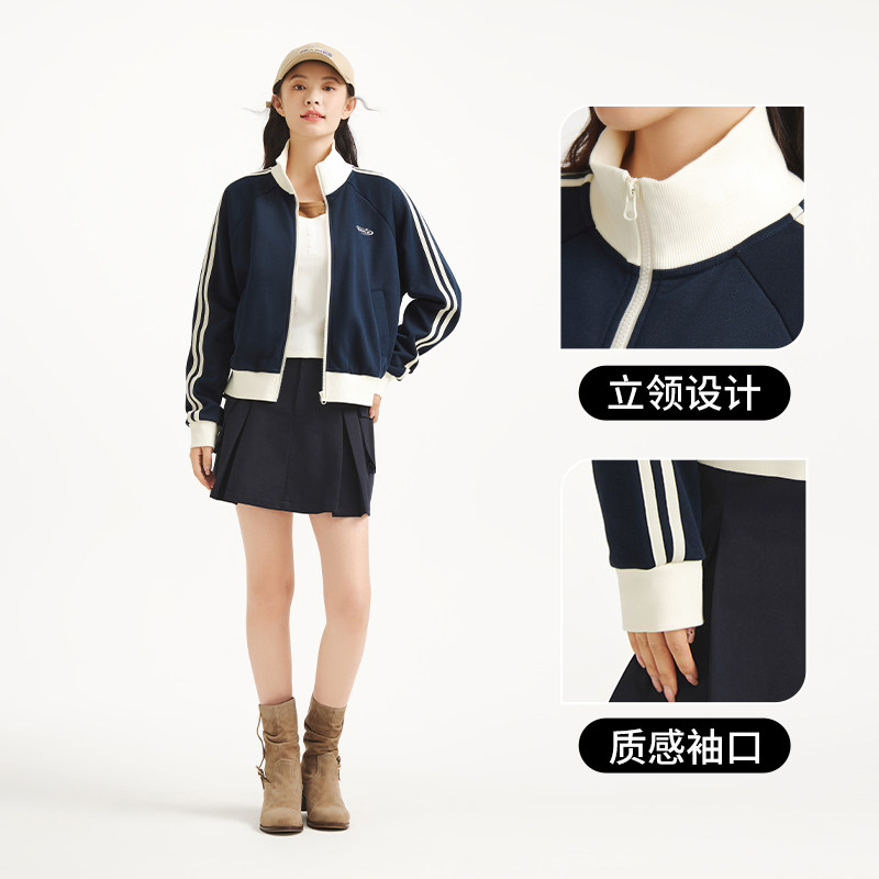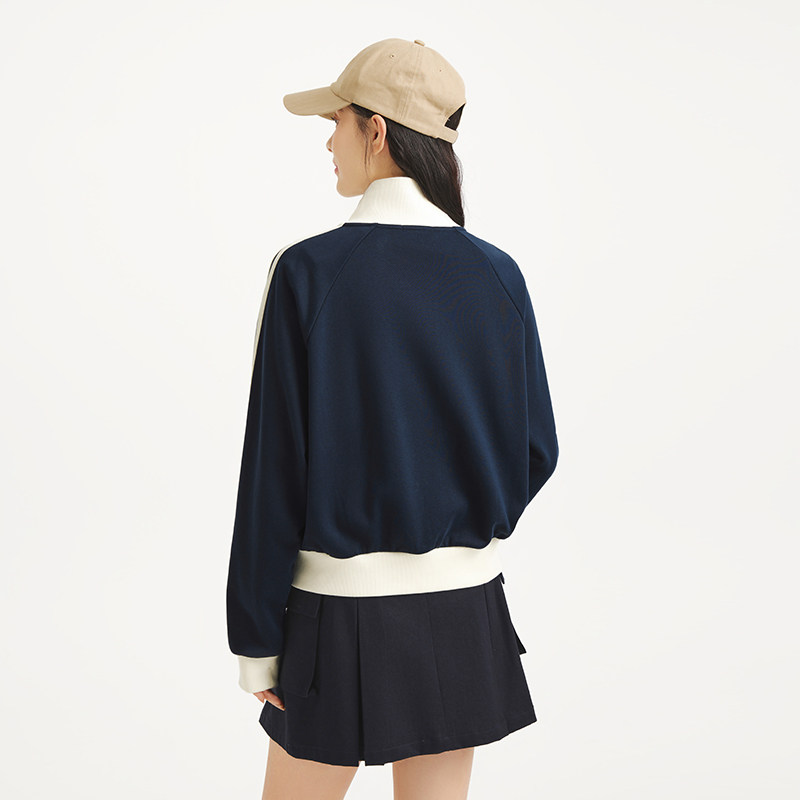 热风女士拉链立领外套2025年秋季新款撞色学院风少女轻薄卫衣外套