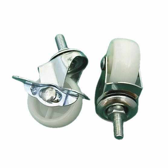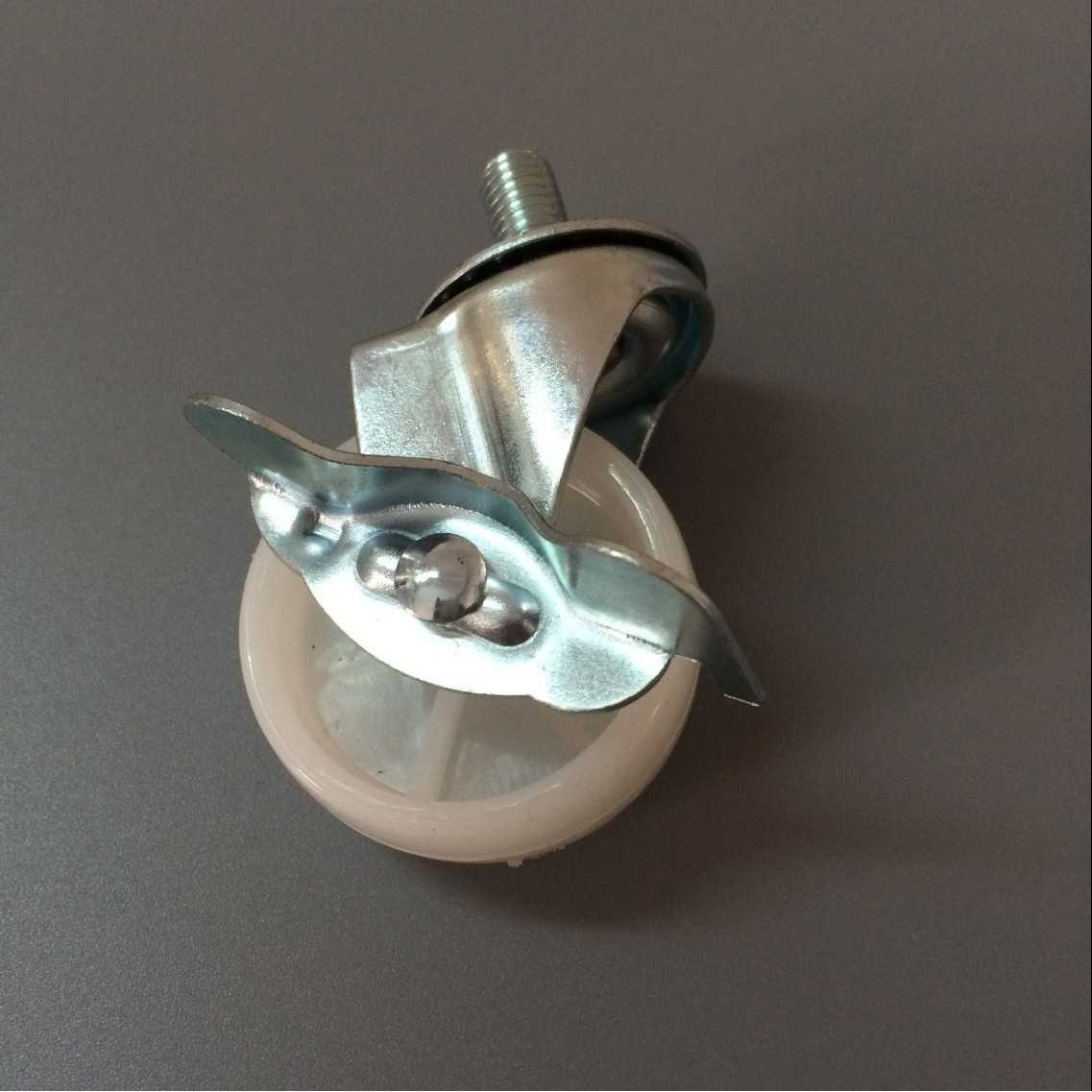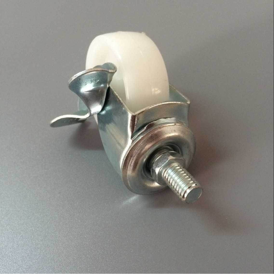 供应2寸m8*15里10刹车万向轮 轻型丝杆刹车白PP轮子边刹车扁轮子