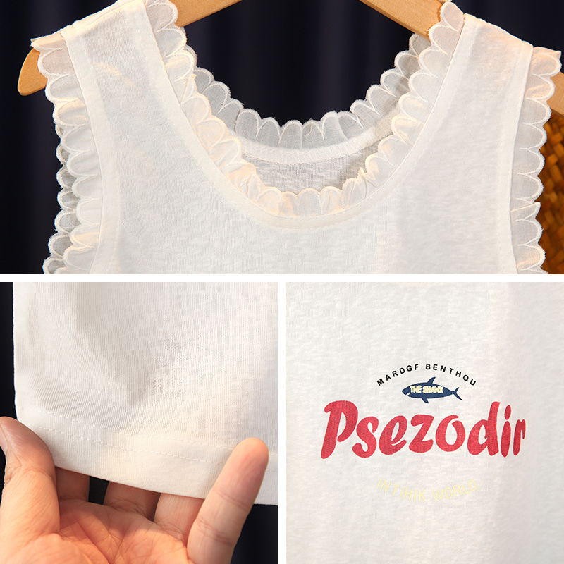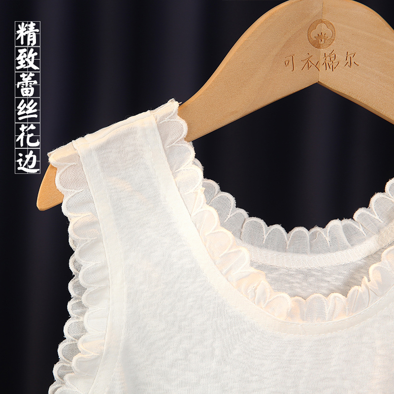 可衣棉尔韩式纯棉夏季花边领背心