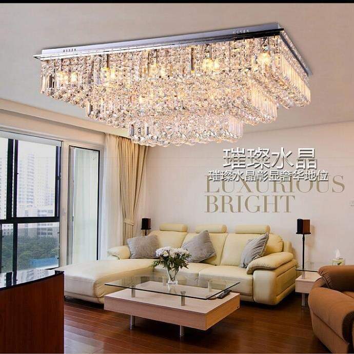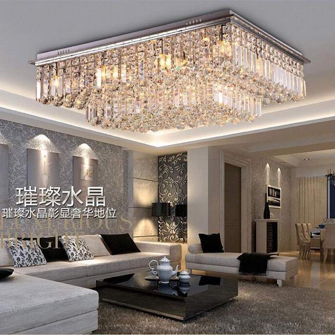 灯都中山简约现代客厅灯豪华双层水晶灯长方形客厅灯LED吸顶灯
