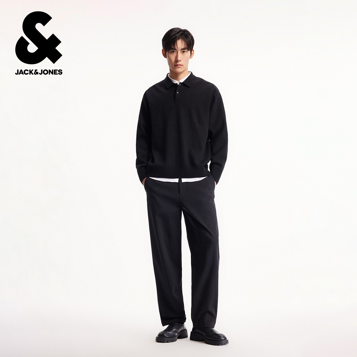 绫致杰克琼斯男装冬季毛衣针织衫商务日常纯色潮流polo领长袖上衣