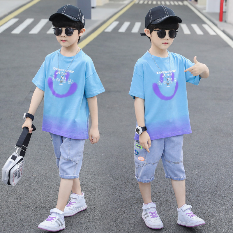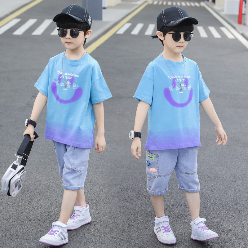 短袖牛仔裤霸气风男童夏装