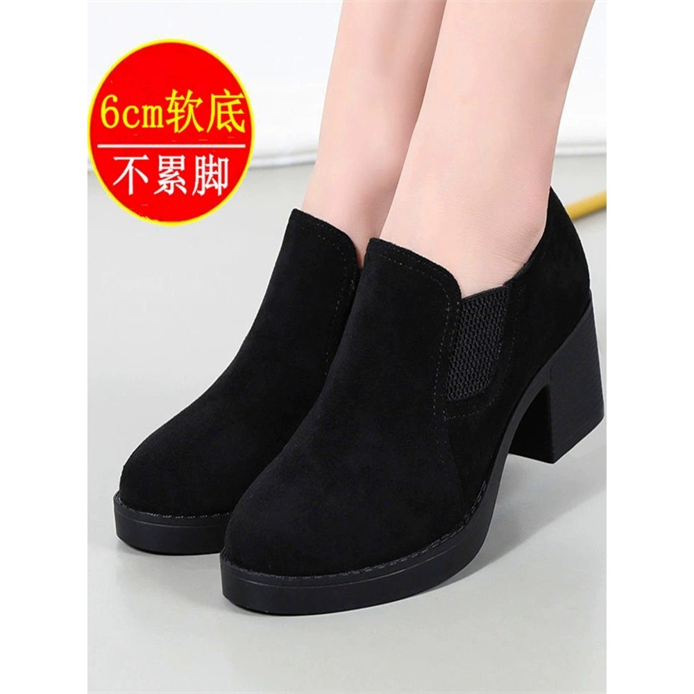 正品粗跟高跟鞋女2024春新款厚底防水台中跟单鞋软底不累脚工作鞋