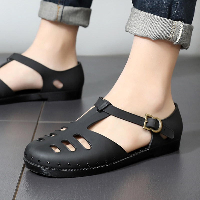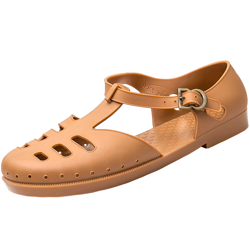 男士凉鞋包头老式怀旧复古风塑料凉鞋男夏爸爸潮越南橡胶沙滩鞋