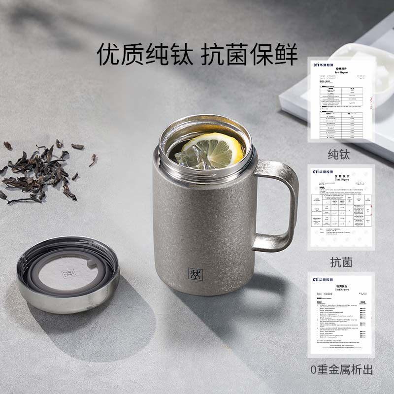 德国双立人纯钛保温杯马克杯带盖便携咖啡杯茶杯抑菌保鲜男女通用
