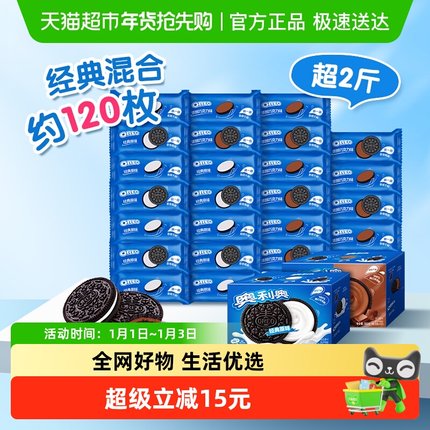 【超级桶】奥利奥夹心饼干巧克力味+原味组合582g*2盒休闲零食