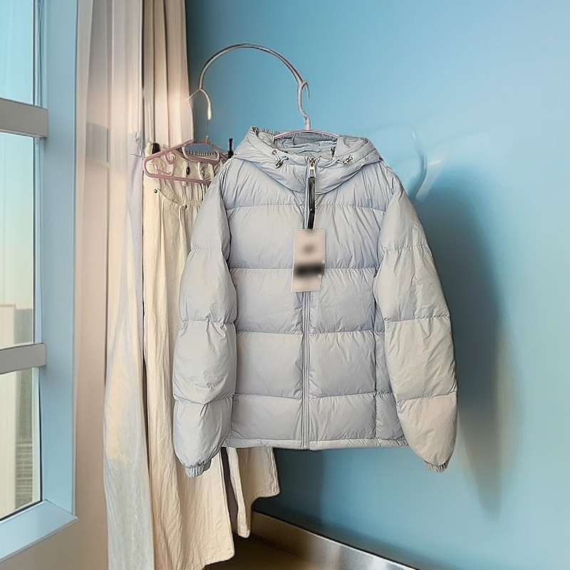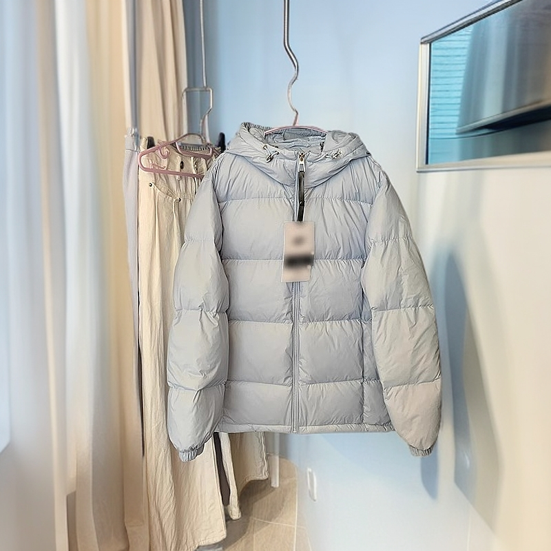 胖mm大码女装浅蓝色连帽羽绒棉服女冬季韩版甜美风减龄面包服外套