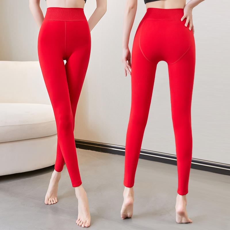 秋冬加绒加厚大红色结婚八分打底裤外穿薄绒靴裤保暖裤九分长裤女