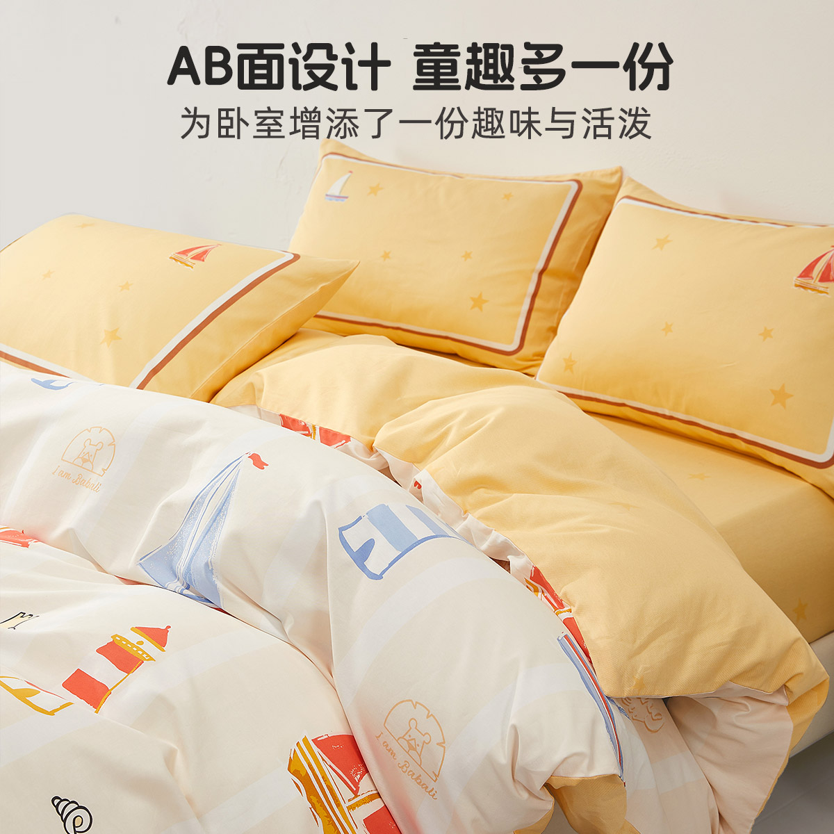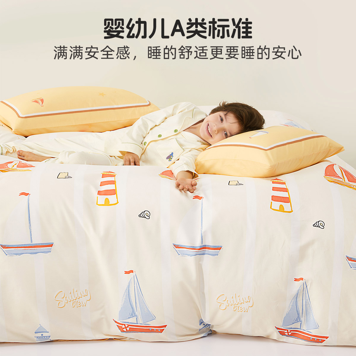 水星家纺床品母婴A类抑菌三/四件套全棉卡通套件儿童床单被套床笠