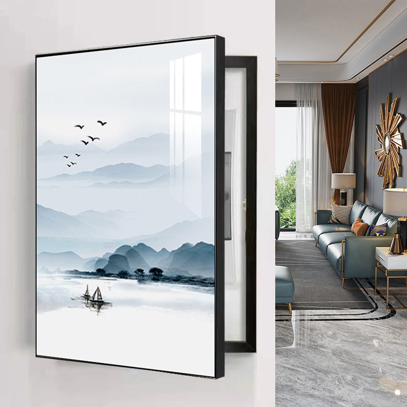 家用竖款新中式电表箱装饰画