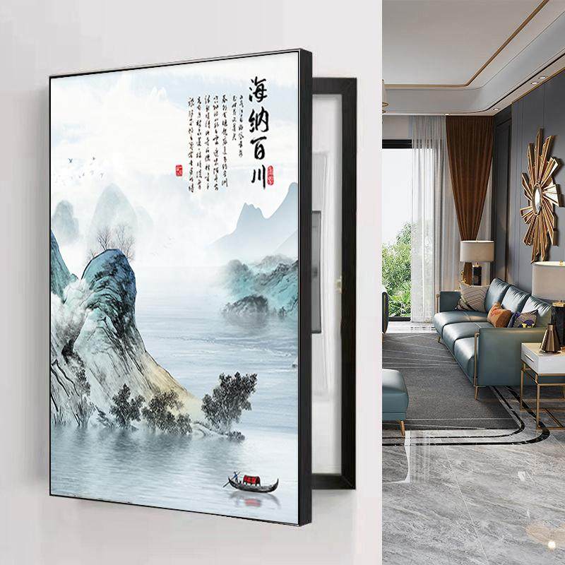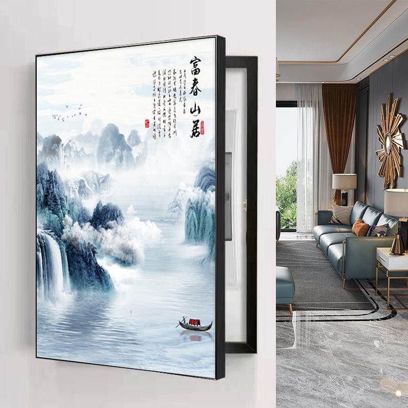新中式电表箱装饰画免打孔竖款遮挡配电箱电源箱挂画总开关盒壁画