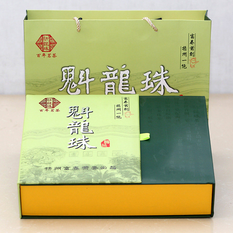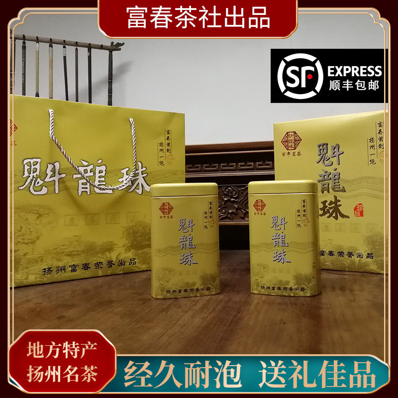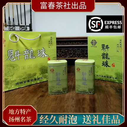 扬州特产富春茶社绿茶魁针珠兰龙井浓香耐泡礼盒装250g奎龙珠茶叶
