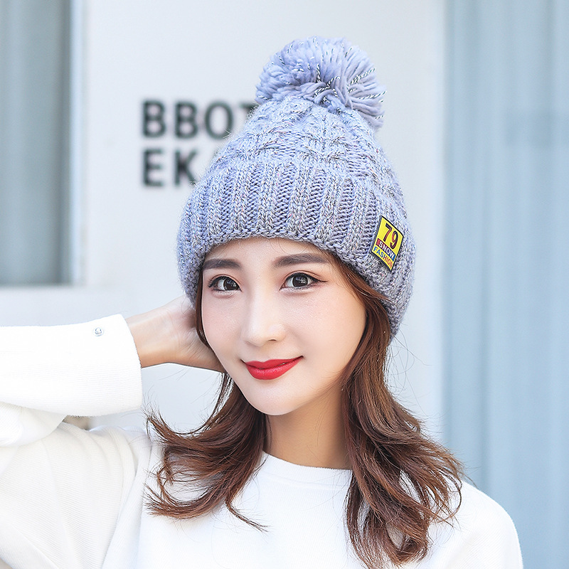 珍玥琦冬天女士帽子户外防寒护耳针织帽变色皮标时尚亮丝毛线帽冬