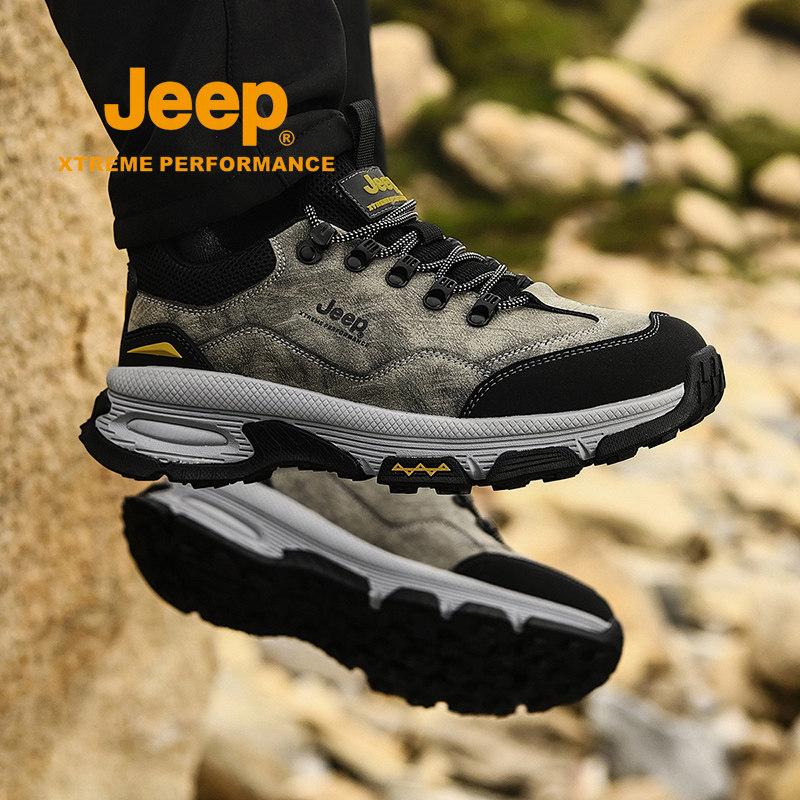 jeep运动鞋男款冬季户外防滑登山鞋子男士轻便软底中年爸爸休闲鞋