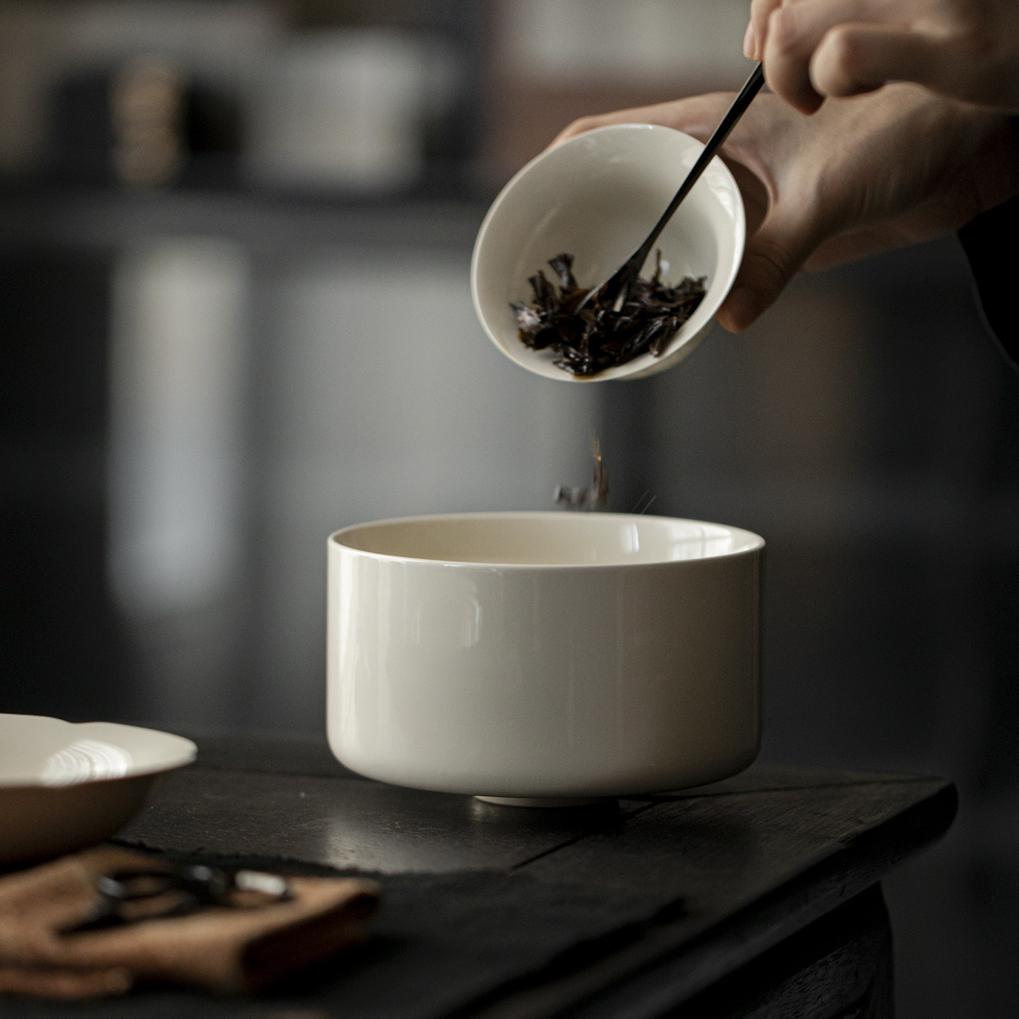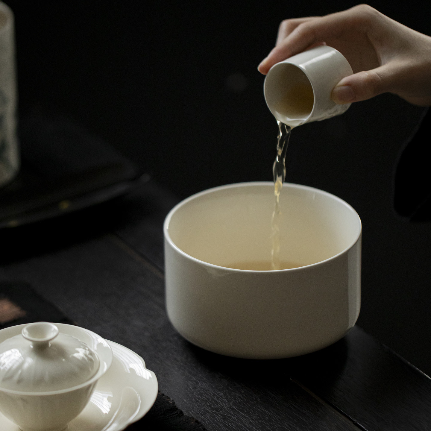 草木祠 象牙白中式茶洗陶瓷水盂家用茶渣缸废水缸茶具配件茶具盆