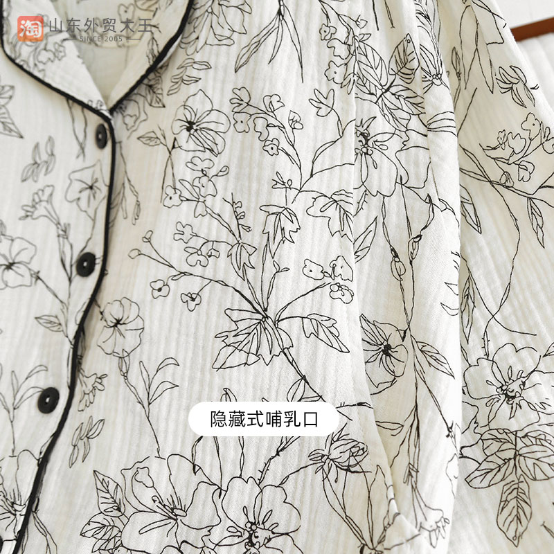 纯棉纱布月子服孕妇产后哺乳睡衣女春秋薄款夏季喂奶家居服套装