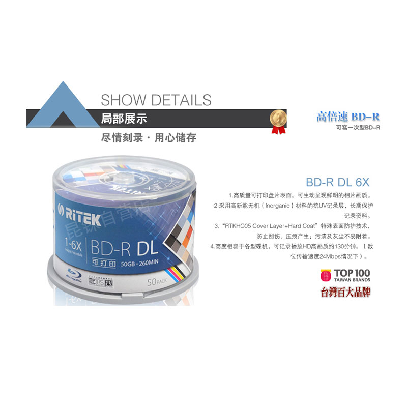 铼德蓝光50G蓝光光盘可打印BD刻录盘空白刻录光碟大容量BD-R DL