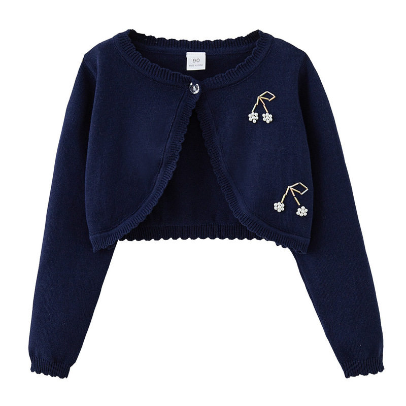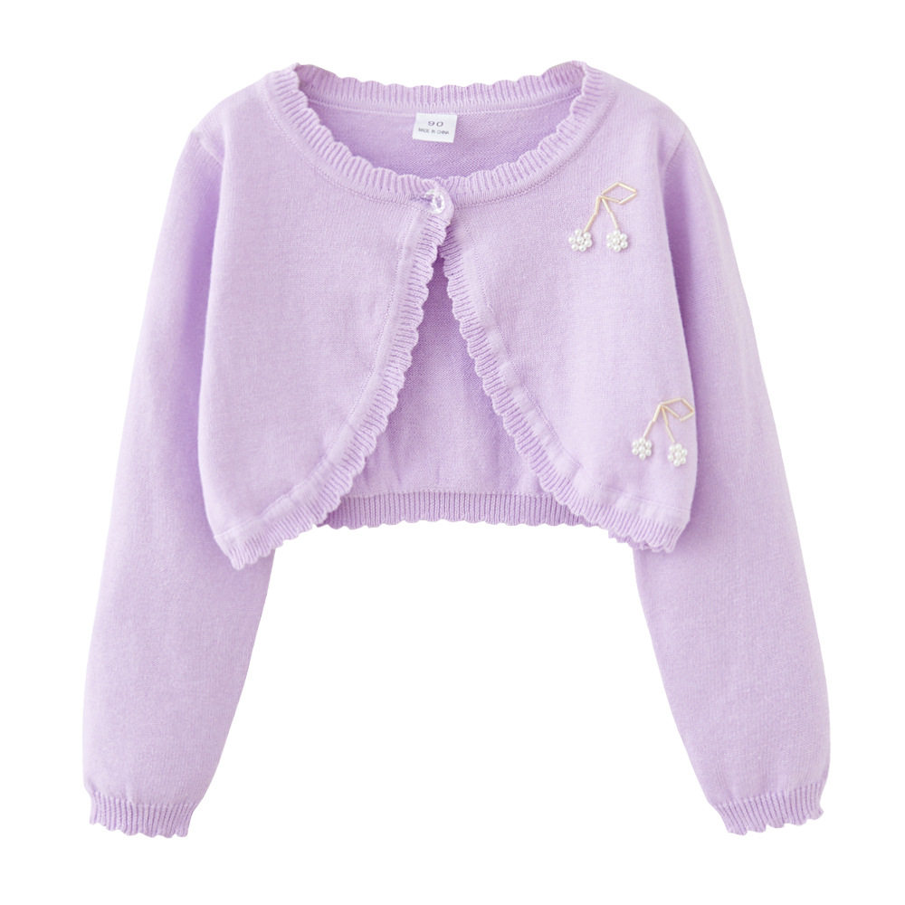 女童外搭开衫春夏宝宝中大童纯棉短款薄毛衣连衣裙针织小披肩外套