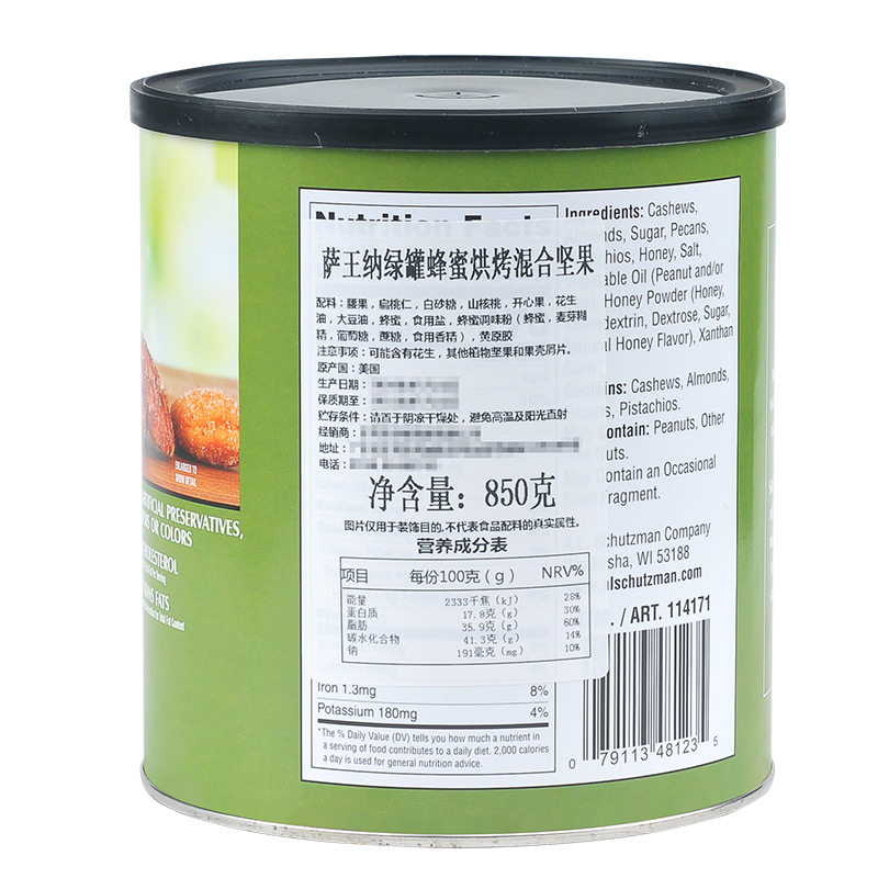 美国进口savanna蜂蜜混合坚果仁香烤干果开心果每日零食罐装礼盒