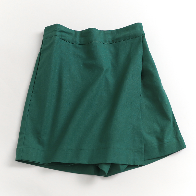 k205纯色棉麻半松紧腰高腰修身裙裤夏季新款2023百搭女休闲裤短裤