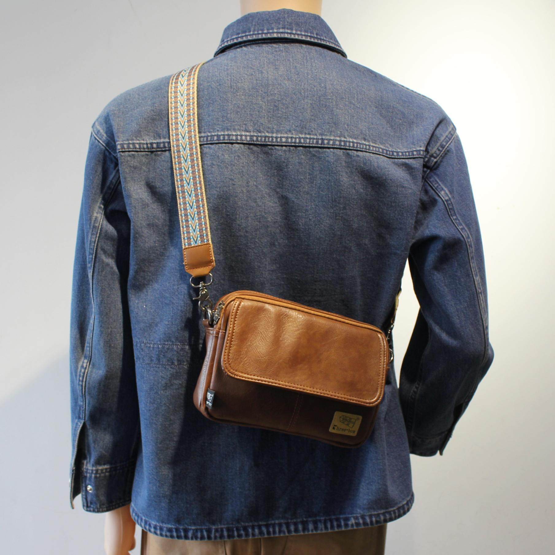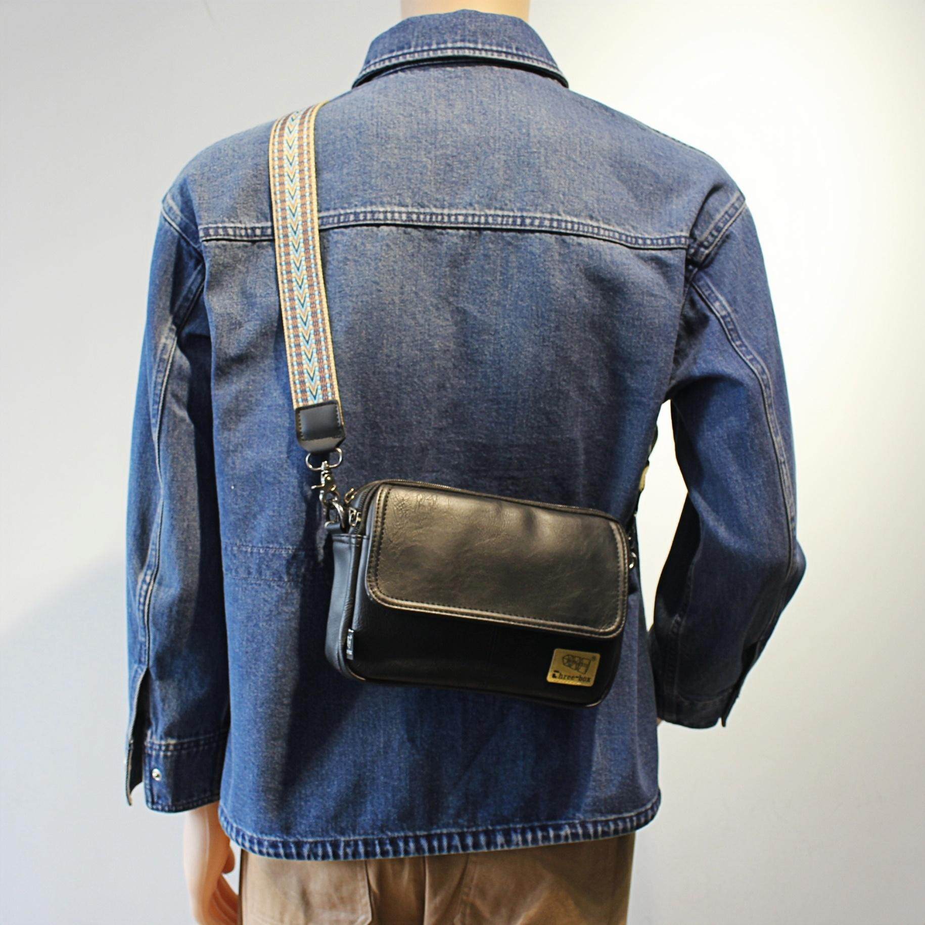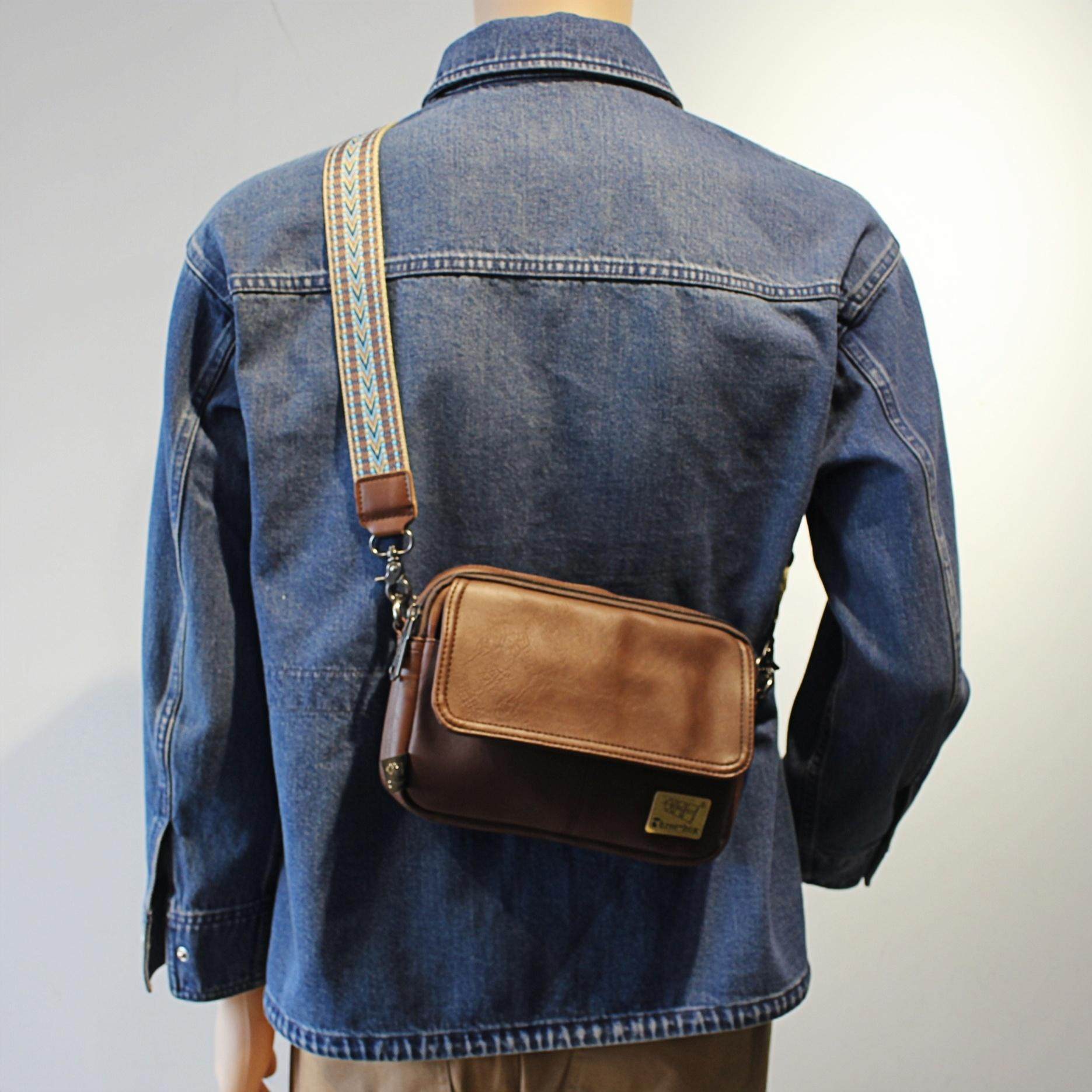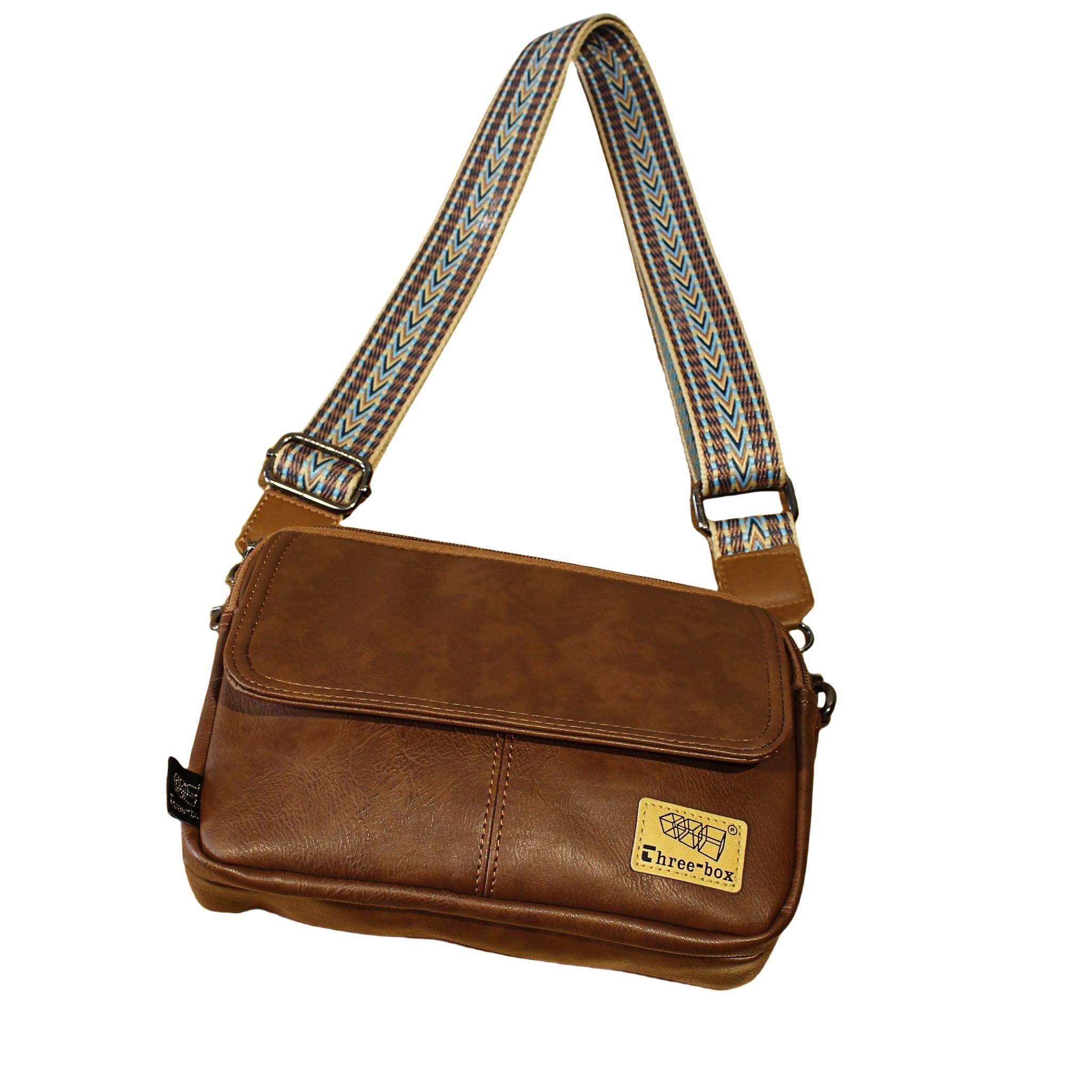 ThreeBox新款男士单肩包休闲日系皮质斜挎小包韩版青年多口袋背包