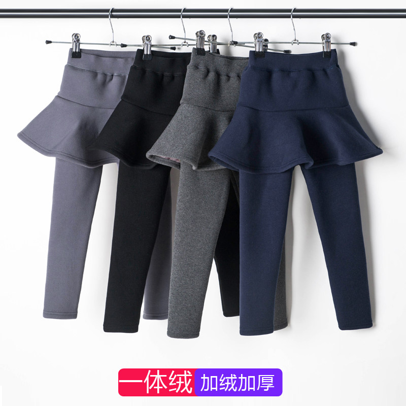 女童打底裤加绒加厚儿童裤子秋冬款童装一体绒假两件裙裤宝宝长裤