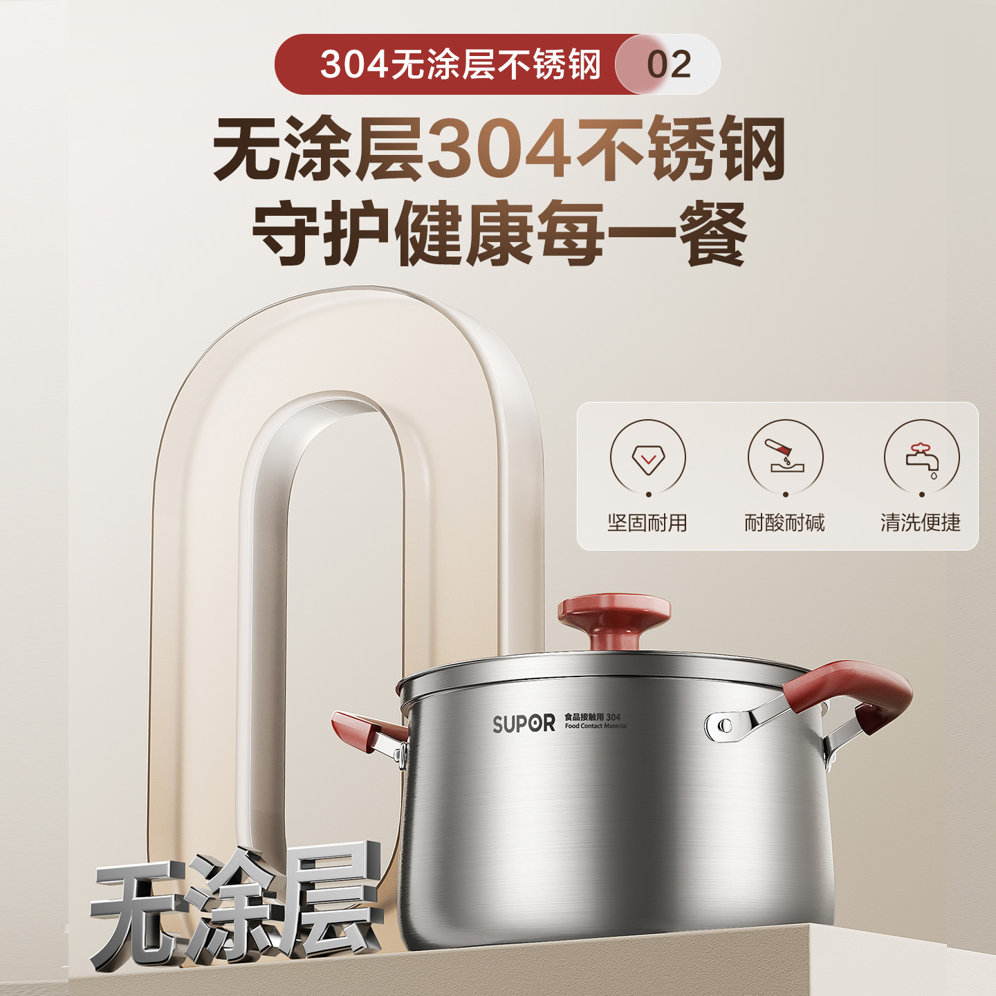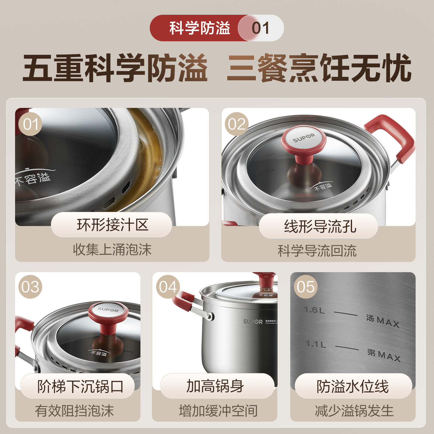 苏泊尔304不锈钢汤锅防溢款
