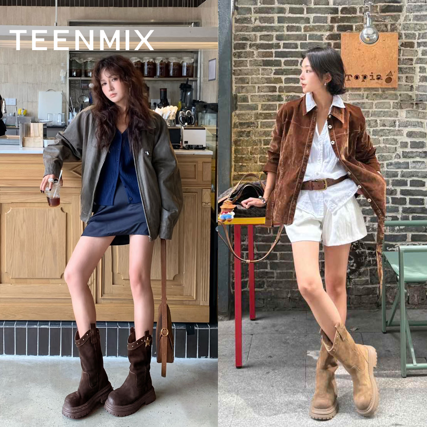 【所有女生的衣橱直播间】天美意厚底西部堆堆靴女加绒雪地靴长靴