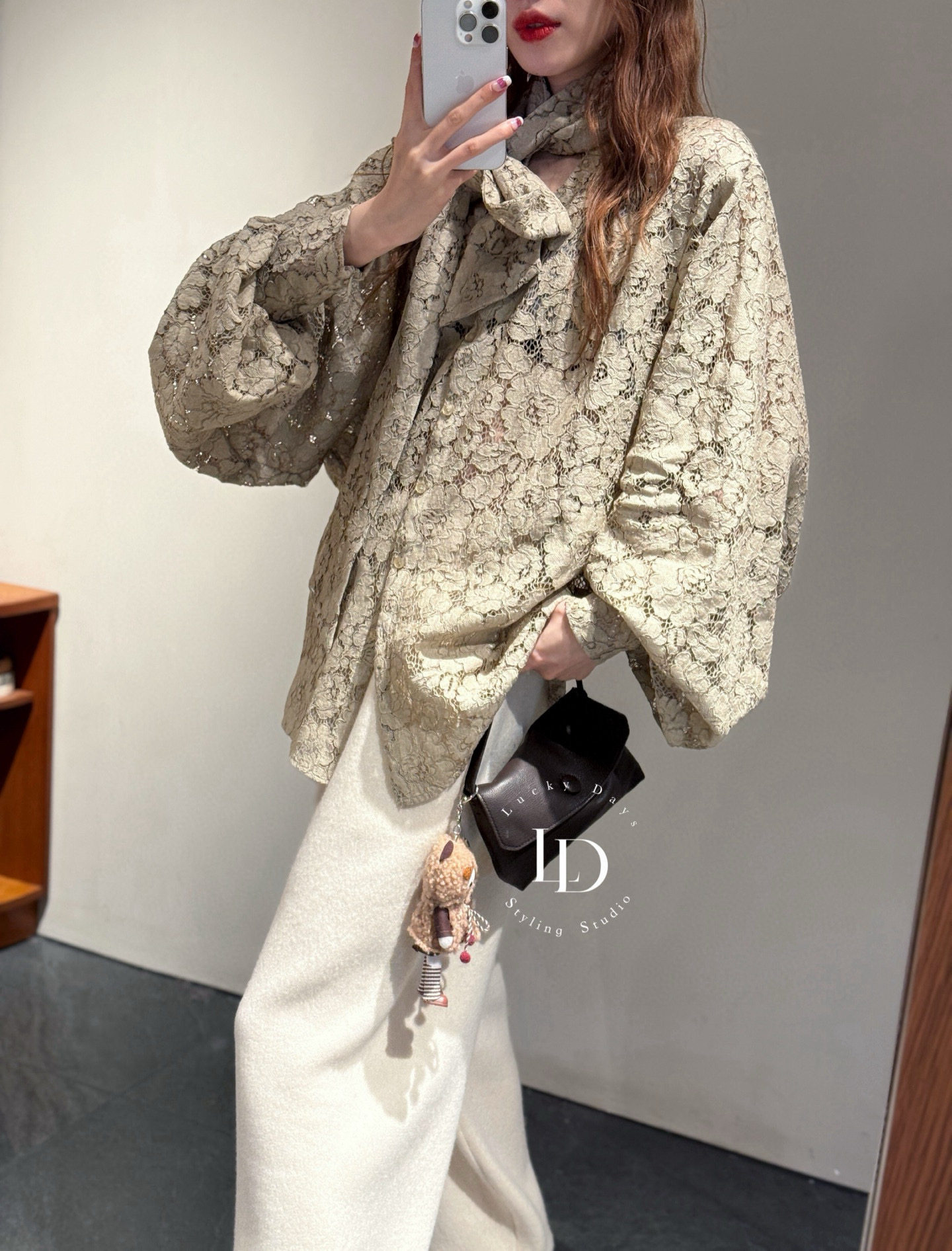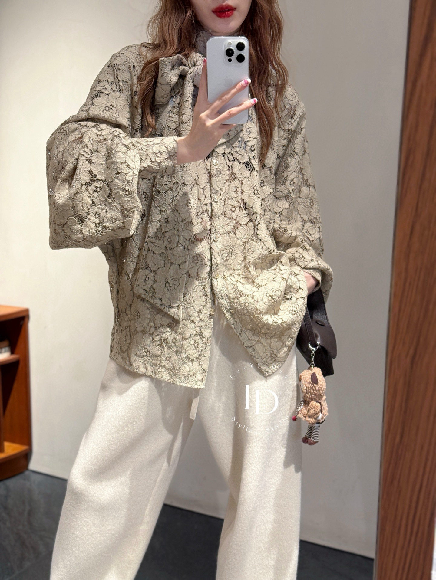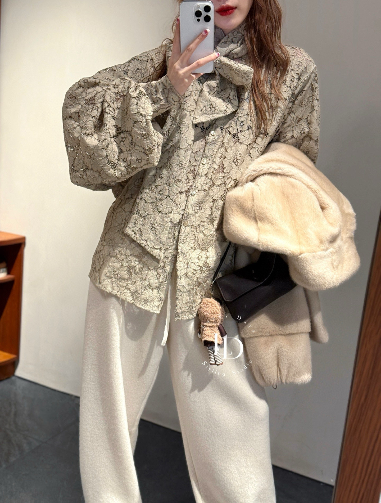 非实价2026冬季新款欧洲站潮牌简约轻奢百搭宽松休闲舒适蕾丝衬衫