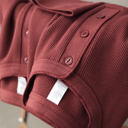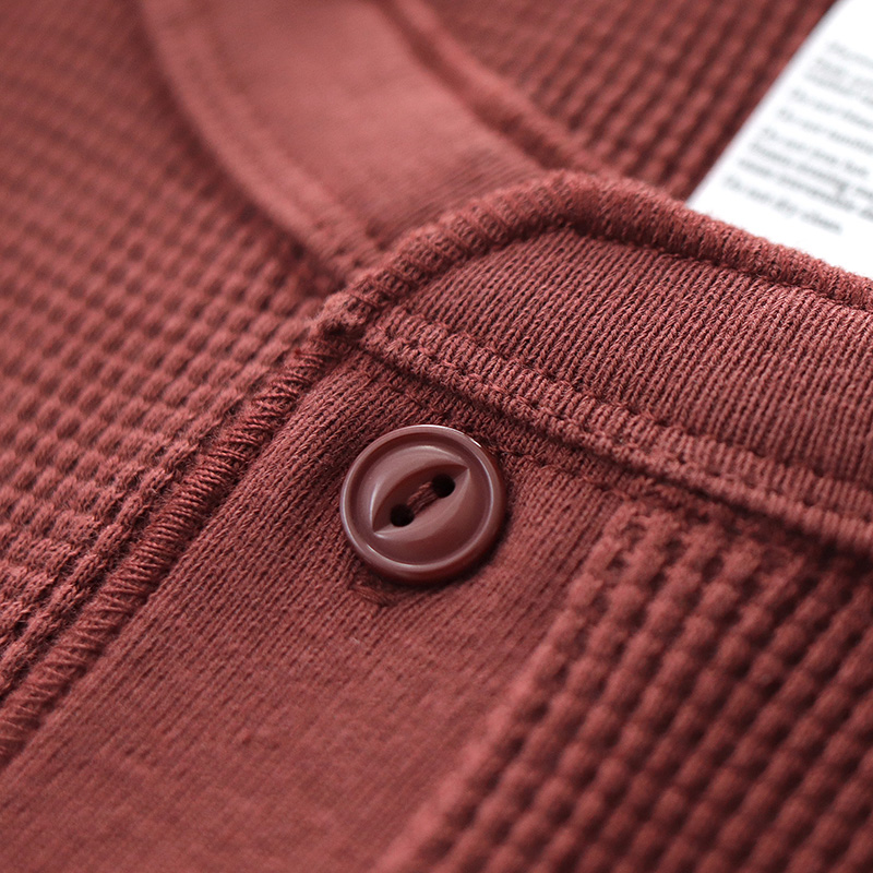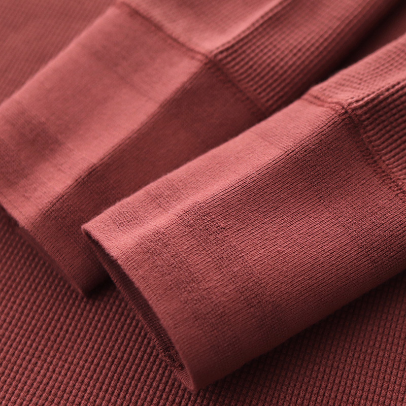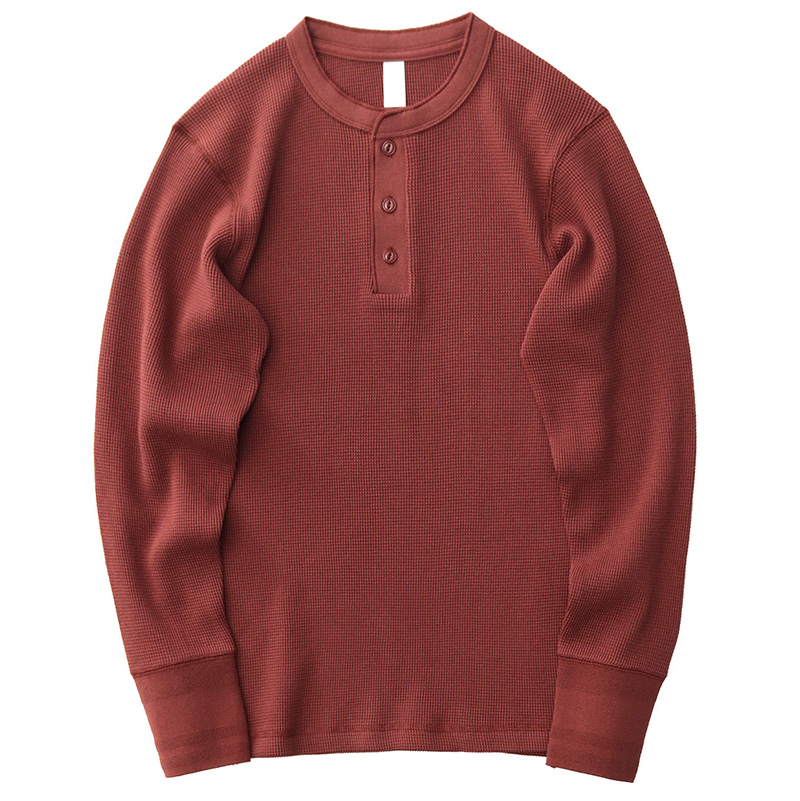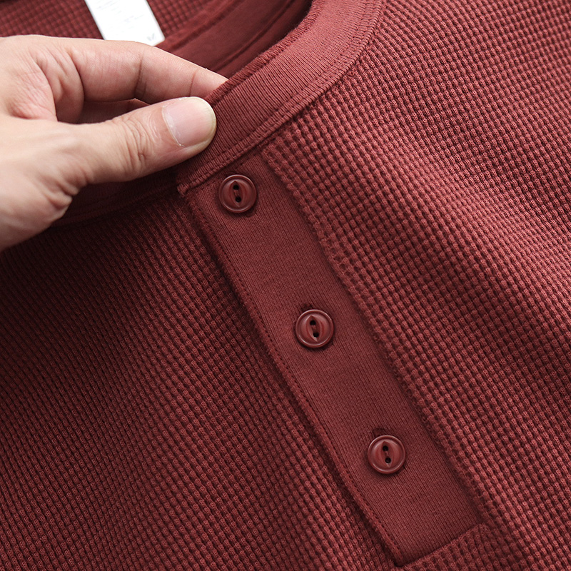阿美咔叽华夫格T恤男长袖美式复古酒红色修身打底硬汉亨利衫春秋